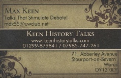 Max gives excellent, lively and entertaining history talks covering the Medieval, Tudor, Stuart, Georgian and Victorian periods.